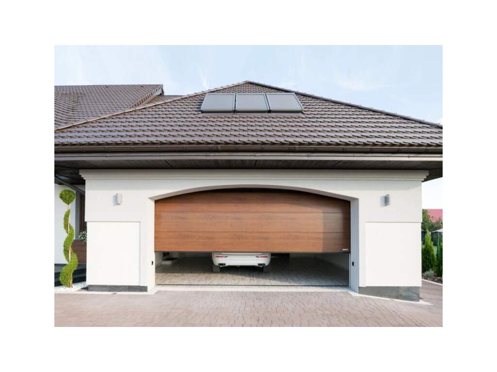 Moderní sekční vrata s hladkým panelem bez prolisu, která nabízí čistý design a spolehlivý provoz díky automatickému ovládání MOTO io. Ideální volba pro ty, kteří hledají kombinaci estetiky a technologie.